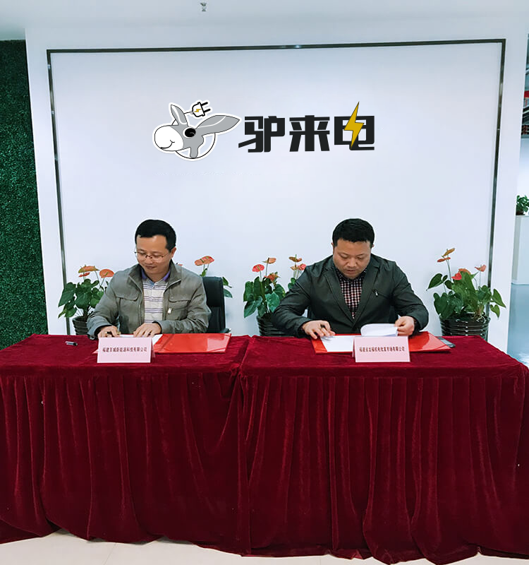 熱烈慶祝福建驢來電新能源科技有限公司與福建龍福機(jī)電市場就“驢來電”充電站成功簽約! 2017年11月22日,福建龍福機(jī)電副總何萬芬、運營總監(jiān)黃巍偉蒞臨福建驢來電新能源科技有限公司商談“驢來電”充電站合作事宜并成功舉行了簽約儀式。